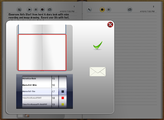 Tap the Tool icon in the middle, Select the style you like and press the "Check Mark" button to change the notebook style. Certainly you can change the font, font size, font color as well. If you select the black notebook, make sure you change the font color to be white, otherwise, you will not see anything while you typing.