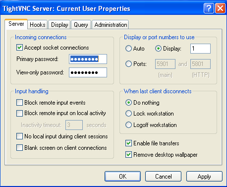 2. Setup the server, Set the primary password or viewOnly password, and Display Number (Usually set to 1)