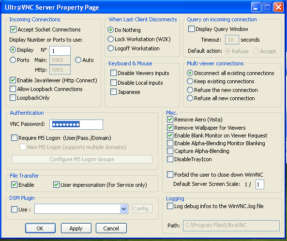 Ultra VNC configure